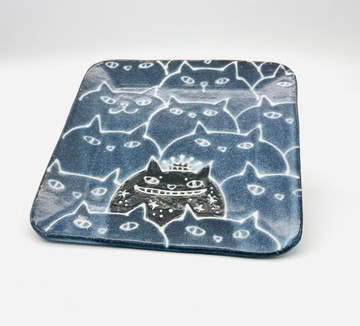 這是《尋找星星貓王》系列中的一款小尺寸方盤。這是 Icchin 手繪的手工製作的盤子。貓的放置位置和平衡因作品而異。尺寸:約。四邊各16厘米,高1.5厘米