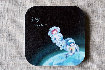 stay true | 方形 | 硅藻土杯墊#設計理念|日常喝水、飲料少不了一片杯墊,妝點桌面增添日常風景。#商品故事|在滾滾生活裡帶著最純真的彼此,一起繼續向前探險吧!#商品材質|60%硅藻土(二氧化硅SiO2),20%石英砂,20%有機纖維,硅藻土杯墊粗糙面即可止滑,我們並無另外黏貼EVA止滑墊。|附件| 原色無印刷牛皮紙盒 (圓形開窗,可看到杯墊印刷圖案)。#商品規格|厚度0.9 x 10 x 10 公分。#優惠活動|購買三片杯墊即贈送一張明信片。#小小提醒|商品照和實體若有些微色差是正常的喔!#聯絡設計師|有任何問題歡迎點下右邊『聯絡設計師』連結,我會盡快回覆喔:)#硅藻土小常識:• 「珪藻土」就是「矽藻土」就是「硅藻土」,是來自淡水湖或深海中的矽藻細胞壁,其實就是古代矽藻化石經過多年沈積而成的生物化學沉積岩。• 硅藻土密度低、多孔隙,有極強的吸水性,也有很好的絕緣特性,能隔熱斷冷。• 天然的原料顏色(米白),無添加染色劑,環保健康,無毒,無石綿。• 不同的地理位置會生產出不同品質和不同顏色的硅藻土。• 以高溫、高壓蒸氣壓製塑形而成,成品具有強固的結晶構造,不易因濕氣而變形,品質穩定。• 硅藻土產品塑形製作是以攪拌的方式混合三種原料,以致於某些區塊可能單一成分含量比例較多,表面紋路與吸水性就會有落差,造成印刷墨水著墨程度明顯不一的狀況,尤其是大面積的純色塊更容易產生視覺上的不均勻,並非是我們的印刷品質不良。• 從壓模到脫模成型過程中,表面難免多少會有一些壓模痕跡、小凹痕、纖維孔洞和矽土粉末,乃屬正常現象,非產品瑕疵。• 初次使用時,產品表面會有些許粉末,可使用濕布輕點沾拭乾淨即可,請勿來回摩擦擦拭印刷面。• 會吸水、會蒸發,但不代表永遠都不會發霉,定期的清潔保養是必要的: 平時總是在幫忙吸濕的硅藻土,也是有需要休息停止工作的時候,定期使用清水沖洗後,將其斜立置放於通風處陰乾,也可以日光曝曬10-15分鐘殺菌消毒。• 若有清洗必要,請以水流沖洗即可,請勿用力擦拭印刷面或使用任何刷具與洗滌劑清洗。• 茶水、醬油、咖啡等有顏色的液體,一旦撒在硅藻土商品表面,會滲入內部留下痕跡,污漬是無法清除乾淨的。• 長期使用後可能會因人體皮脂、食物殘渣、灰塵等關係,導致產品表面微孔逐漸堵塞而影響吸水能力。
