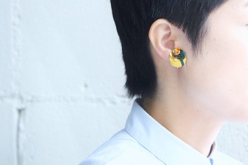 MMA 美國大都會藝術博物館 銀杏琺瑯純銀耳針