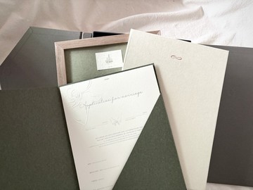 【書夾客製化程序】 (含木框.磁吸珍藏盒.精裝書夾.簡約灰夾.書約3張)1.選擇單面or雙面製作2.告知客製化資訊 (選填)- 名字(中英皆可)- 紀念日期(初識.登記日期等等) - 金句 -圖案(需線條無彩度圖。有一般素材.無代繪.可自行手繪翻拍)* 圖檔避免畫質壓縮,請傳至信箱 sober6ook@gmail 檔名:XXX帳號 圖檔3.安排設計師排版4.確認版面後下單【🚛出貨時間】 定稿下單後兩日內出貨一般地區.無特殊節日•宅配出貨隔日可收到(不含假日)•便利商店約三日運程https://live.staticflickr.com/65535/53662050923_4dbf1ae237_b.jpg⦁日日更新IG作品,歡迎參考:soberbook人像圖無代繪(png.jpg.pdf.檔皆可以),亦可手繪翻拍或是以素材排版若有圖檔原檔,麻煩幫我們寄至信箱➖➖➖➖➖➖➖➖➖➖➖➖➖➖➖➖【商品內容】贈磁吸炭灰收藏盒($270).碳灰簡約書夾(無販售)•磁吸炭灰收藏盒•木框•精裝硬殼書夾-奶茶白(可以客製化圖案.有專業設計師排版定稿,確認再下單)-含 結婚契約.夢想清單N次貼各1張(不定期改版)•書約 (霧金or霧銀)一式三張. 含碳灰簡約書夾*250521磁吸盒全面改版為適用書夾不含木框的尺寸:內徑約31.5x23x1.5cm*(如商品圖)【商品簡介】•磁吸炭灰收藏盒採用岩見炭灰進口美術紙有特殊的手感,顏色為偏高級的炭灰色。尺寸|(適用 A4書夾)外徑 約32.8x24x2.6cm內徑 約31.5x23x1.5cm襯墊 岩見炭黑 0.6cm*書夾厚度約0.7cm*https://live.staticflickr.com/65535/54535041199_0fc53d62a2_b.jpg•精裝書夾—燕麥奶茶色硬殼簡約式書約夾,厚度約0.7cm整個版面皆可以排版客製化內容永恆符號為固定位置 燙玫瑰金客製化的內容無燙金,為雷射雕刻,約呈現古銅咖啡色https://live.staticflickr.com/65535/53751187267_a1be10ea5e_b.jpg◍內文為自然溫潤的厚磅紙,低調與華麗兼具猶如梔子花般,潔白醇厚,寫下兩人最重要的約定。◍外殼採日本厚磅羽咋紙與硬紙板,厚實內斂。呈現自然草木纖維紋理和樸實感,為經典日本手工紙,厚磅不透光。•A6 N次貼[婚姻契約+兩人夢想清單](左頁兩張A6大小)比書約更重要的東西啊!婚姻契約:不是那種搞笑的不平等條約,而是兩人私密溝通後的契約,所以是空白頁面喔。夢想清單:互相拉著彼此,一起前進吧。•清單為N次貼,也可以撕下換為做紀念的喜帖、名片等等https://live.staticflickr.com/65535/53788802575_0151cd4a19_b.jpg•木框尺寸|適用A4大小文件https://live.staticflickr.com/65535/53662096168_4e07849efd_b.jpg另可加購下排刻製名字 $90-中文較複雜不適合,僅限英文,25個字母左右。 https://www.pinkoi.com/product/WJhVt7SU**•書約.固定版面顏色.一式三張(霧銀or霧金)含灰色簡約書夾**https://live.staticflickr.com/65535/53662293250_39effcdda7_b.jpg ** 書約花朵為梔子花,****象徵「永恆的愛與一生的守候和約定」** "The eternal love and agreement."梔子花花開需要經過漫長的等待,等待的時間越長,花香才越久。猶如愛情一樣,除去平淡、持久的守候之外是滿滿的幸福,是美麗、堅韌、醇厚的生命本質。https://live.staticflickr.com/65535/52850881510_39527fd303_b.jpg灰色書夾加購-客製化名字 $60-https://live.staticflickr.com/65535/54479832689_d1f8bdf091_b.jpg[霧金梔子花書約]•日本厚磅羽咋紙結婚證書草木纖維紋理,為經典的手抄紙,古典低調尺寸| A4紙質| 215磅 日本厚磅羽咋紙加工| 凸板印刷花紋 凹版印刷文字 燙霧金https://live.staticflickr.com/65535/53788802575_0151cd4a19_b.jpg[霧銀梔子花書約]•日本厚磅羽咋紙結婚證書草木纖維紋理,為經典的手抄紙,古典低調尺寸| A4紙質| 215磅 日本厚磅羽咋紙加工| 凸板印刷花紋 凹版印刷文字 燙霧銀(手工紙張含些微黑點和微雜質是正常的現象,不介意再下單! )https://live.staticflickr.com/65535/53662174628_1c0921ae4e_b.jpg**可另外加購代印個資 380-**https://www.pinkoi.com/product/Yd2mmjZchttps://live.staticflickr.com/65535/53788685424_66602431ae_b.jpghttps://live.staticflickr.com/65535/52974237935_97f3346eee_b.jpg⦁客製化書夾為永恆書夾另外雕刻客製化內容,內容無限制,整個版面皆可以利用。⦁日日更新IG作品,歡迎參考https://live.staticflickr.com/65535/53294262731_6ff06e12f6_b.jpghttps://live.staticflickr.com/65535/52489665997_d35e5be857_b.jpghttps://live.staticflickr.com/65535/54516410461_eb0fe2679d_o.jpghttps://live.staticflickr.com/65535/54478383317_464a22d35d_o.jpghttps://live.staticflickr.com/65535/51400058035_e6315573eb_b.jpg*若無特別告知及視同同意作品分享.若不公開請於備註欄位註明即可喲(IG:soberbook)