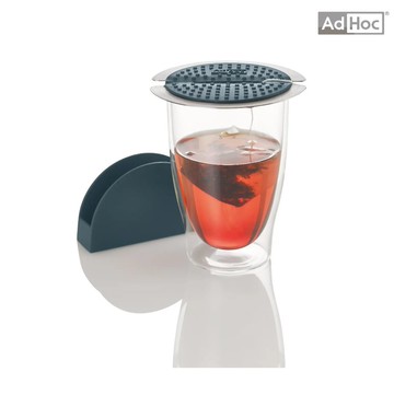 AdHoc : 德國精湛工藝設計,時尚與功能兼具的生活用品 創立於1995德國曼海姆,AdHoc致力於發展Fashion Lifestyle 廚房與餐桌上相關用品,以「功能」、「品質」 、「美學」及「創新」為四大核心價值,研發設計,持續每年兩次發表新產品。 AdHoc 不僅在研磨器發展史創下許多世界第一,寫下歷史,獨領風騷。更在品茶及品酒等相關周邊產品,開發精緻實用又具設計感商品,深獲市場好評,獲得無數歐美設計大獎! 目前產品行銷全球三十個國家以上,並獲得全球W Hotel、遠東飯店及德國航空Lufthansa等眾多國際連鎖飯店及餐廳指定使用。 使用茶包喝茶時,可用AdHoc於2014新推出附底座夾茶包杯蓋組,除了可當杯蓋使用外,保持茶水溫度,避免降溫太快外,其貼心設計可將茶葉袋內茶水擰乾,再放入底座,不會將茶水滴到桌面,弄得到處都是水滴,也不至於發生茶包吊繩掉倒茶水裡面不易拿取,耐高溫的彈性矽膠杯蓋,不論夾住固定茶包吊繩或是擰出茶水,都是非常便利,加大面積的杯蓋(直徑11公分)幾乎適合所有杯子,底座除了承接杯蓋茶水外,也可用於杯蓋清洗後收藏,亦可當杯墊使用,增添品茗氣氛與便利。製造商:德國 AdHoc Entwicklung und Vertrieb GMbH材質:不銹鋼 / 耐熱塑膠 / 矽膠尺寸:直徑11cm 含底座 - 高6.7cm x 寬 2.7cm x 長11cm