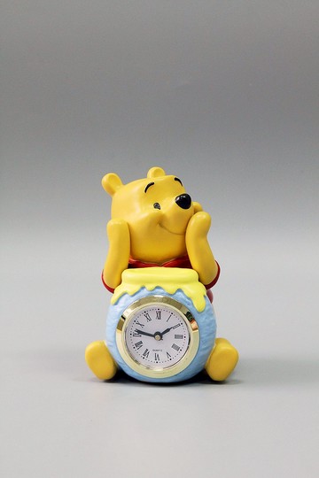 日本迪士尼設計小熊維尼抱蜂蜜雙手托臉桌上時鐘擺飾