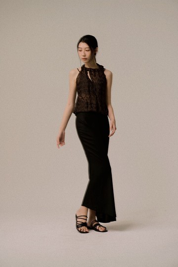 【全程台灣製造】-高彈VOUX織帶中長裙-黑