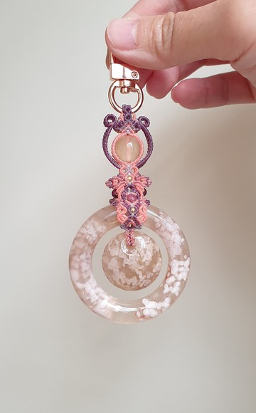 SA36櫻花瑪瑙。南美蠟線編織掛飾