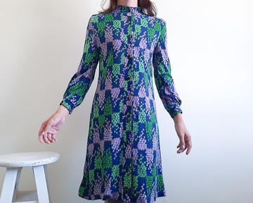 復古 1960 年代花卉羊毛現代連衣裙 復古羊毛連衣裙 4 碼連衣裙