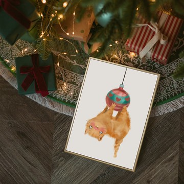 嘿!鏟屎的!嘿!你看我可以這樣耶!快把我放到聖誕樹上去!◉ 產品規格:- 印刷:數位攝影品質精細輸出 (採用日本專業輸出機,單四色CMYK大圖油畫布輸出)- 裝裱方式:此作品均含框,不可換框。- 內外框:松木內框、PS進口鍍膜外框。- 背板:此作品含背板,為高密度裱褙背板,可防潮、防蟲蛀。- 畫布:高磅數專用油畫布,具有布質紋理,色彩細膩飽和。——