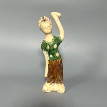 通高(cm):25唐三彩是一種流行於唐代的陶瓷藝術,以其繽紛多彩的色彩和多樣化的造型而聞名於世。製作唐三彩的主要時間段為唐代初期至中期(618年至907年),這一時期的陶瓷工藝達到了高峰。唐三彩以其獨特的技術特點脫穎而出,通常製作過程包括製胎、雕花、施釉以及窯燒等精湛工藝。色彩方面,唐三彩以鮮豔的黃、綠、白、褐等為主,展現了當時工匠對於色彩的巧妙運用。造型方面,陶瓷製品的形狀多樣,包括人物、動物、植物等,尤其以陶俑最為著名,如陶俑駝、馬、俑俑等。唐三彩的製作技術不僅在中國廣受讚譽,也在國際上贏得了高度評價。這一瓷器藝術風格在唐代達到巔峰,為中國後來的陶瓷工藝奠定了堅實的基礎,對後世的藝術發展產生了深遠的影響。購買須知:本館商品皆為十年以上的收藏品,時間久遠可能會有老化痕跡,如氧化、掉漆、刮痕、修補等屬於正常現象。若您極度追求完美,建議慎重考慮。我們會盡力提供詳盡的品項描述和現況照片,請買家自行判斷物件價值。古董商品無保固期也無鑑賞期,售出後恕不接受退換貨。包裝上的錦盒/紙箱因收藏歷久非全新,可能積灰、脫線、老化,如無法接受請勿下單購買,感謝您的理解。#陶器商品易碎裂,部分有缺角修補痕跡,會盡可能拍攝原況供您參考。#本館商品皆只有一件,如對現況照片有所疑慮,請勿下單,沒有相同商品可提供換貨服務。#尺寸均為手工測量,若有些許誤差敬請見諒。
