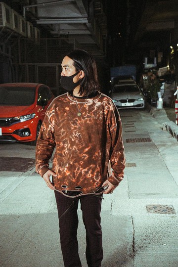 破洞圓領衛衣 100%棉size M-XL M /胸118cm 膊闊58cm 臂長45cm 衣長60cmL /胸122cm 膊闊60cm 臂長48cm 衣長63cmXL /胸132cm 膊闊62cm 臂長51cm 衣長66cm#physiojam #本地品牌#本地製作 #獨一無二 #冰染#ice-dye #連帽衛衣#紮染 #紮染服飾 #tiedye #Hooded#紮染工作坊 #indigo #workshop #art #HongKongbrand
