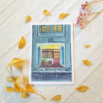 【雨夜中的咖啡廳】-如果有機會,可以開一家咖啡廳的話,理想中的店舖模樣,大概會是如此吧。坐落在安靜的老城街道,不招搖、帶點神祕感。在霪雨綿綿的夜裡,以帶有人情溫度的燈火,招呼著行過的路人。嗨,累了嗎?請進來坐坐。-比起透過社群媒體,以紙本印刷分享自己的創作,更能傳遞箇中的情感與溫度,也更能創造永恆。紙本印刷所呈現的顏色、拿在手裏的觸感,更是冰冷的電腦、手機螢幕所無法取代的。誠摯地邀請您~一同進入微雨窗版主的異想世界...。※由於店鋪剛開張,目前庫存數不多,單款商品如需購買10件以上,請先以私訊告知喔(請點【聯絡設計師】按鈕聯繫版主,感謝)。未來會視商品受歡迎程度提高庫存數量,如有造成不便,敬請多多包涵,謝謝大家的支持。▪ 明信片尺寸 128 x 91mm (B7)▪ 採用250g米蘭卡紙製作、呈現溫潤質感▪ 背面不印格線可自由書寫▪ 庫存現貨將於下單隔日出貨,庫存售完則須等待3~7個工作天▪ 留意印刷品會存在色差,購買前請審慎思考