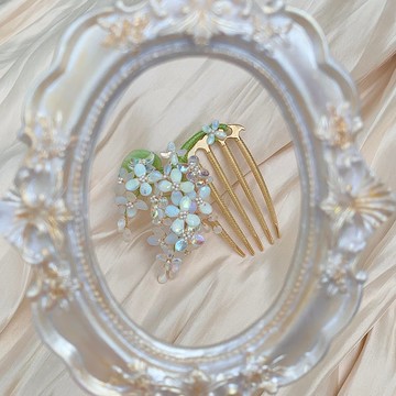 將滿天星河收集凝結成閃著珠光色澤如彩虹般變化的白色花瓣綴上珍珠米般的花蕊織成一束美麗丁香花象徵純潔與青春的初戀素材:進口捷克水晶花瓣、日本水晶米珠、樹脂。尺寸:花團部分5cmx7.5cm金屬髮插:5cmx7.5cm單只髮飾販售。附專屬包裝盒。*每朵小花都是純手工編織,製作工期緩慢。急單請先詢問。【包裝說明】🎁本款為硬式禮盒包裝🪄免費寫小卡服務(卡片文字30字內為限)🍃為了環保,訂單默認多物一盒的包裝方式,如需送禮加購包裝盒請事先告知。【小提醒】1.電鍍金屬長時間接觸水會有氧化褪色現象,氧化褪色後無法回復,請盡量避免與水接觸,洗澡時請別配戴喔。2.天然珍珠,貝殼.....等等有機天然素材,請盡量避免與水接觸,以免氧化/磨損導致光澤暗淡,若是碰到水可用軟布擦拭保持乾燥喔。3.天然寶石有形狀不一、表面有瑕、內里棉絮、礦裂等天然瑕疵,小店使用寶石非專業珠寶等級,購買前請看清說明喔~4.首飾設計小巧細緻,勿用力拉扯、重壓,以避免造成飾品變型、損壞。5.請勿噴灑酒精於樹脂材質、天然石飾品上,容易造成褪色、加速飾品老化情況。