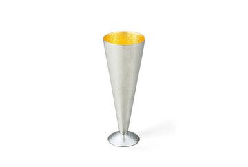 這是一款內側貼著金箔,令香檳更光彩奪目的香檳杯。當金澤聞名的傳統金箔工藝與香檳杯結合,璀璨的金箔與香檳的氣泡相互輝映。這款香檳杯的喇叭造型能提升酒的香氣,與薰酒這類香氣宜人、充滿花果香調的吟釀系日本酒堪稱絕配。超薄杯緣與修長的杯身,正適合用來品味風味纖細的吟釀。清爽的薰酒與帶有果香甜味、酸味的料理及食材可說是黃金組合,因此適合當作乾杯酒、餐前酒,也很推薦您搭配前菜、餐後甜點飲用。同時,璀璨的金箔更能為您的家庭派對、慶祝派對增色。(除了香檳杯-S之外,還備有香檳杯-L:501345。詳細資訊請至香檳杯-L的商品頁面查詢。)|商品規格| ・尺寸:φ58 x H162(mm) ・容量:約130 cc・重量(含包裝):327 g ・材質:錫(100%)、金箔・產地:日本富山縣・製造方式:手工鑄造|注意事項|錫導熱快,建議冷飲避免燙傷。請勿使用於酸性飲料以避免產生腐蝕。使用後請用軟布或海綿搭配廚房用中性清潔劑洗淨。為避免在表面留下刮痕,請勿使用鬃刷或含有顆粒的清潔劑。光澤感消失時擦拭市售的金屬亮光劑或齒粉、小蘇打等物品就能恢復光澤。低熔點,請勿放置於火源附近。請勿使用於微波爐。請勿放入冷凍庫,以免錫杯變色或變形。請勿使用於洗碗機或烘碗機。本商品無開放試用,因為無法再賣給下一個消費者,請支持好設計。