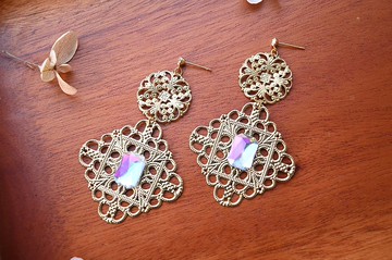 金色雕花鏤空方鑽耳環 耳夾