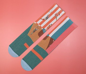 NoMatch不合設計復古插畫馬戲團聖誕印花銀絲襪中筒薄款襪