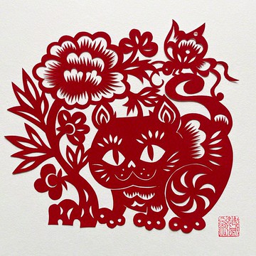 [貓和牡丹,蝴蝶[Motetsu Fuki]]牡丹、貓、蝴蝶三種組合,是祈求財富和長壽的吉祥圖案。剪紙尺寸:約 136 x 124mm附上詳細的設計說明表由於每件商品都是手工製作的,因此細節可能與照片中的有所不同。另外,請注意設計的細節可能會發生變化。