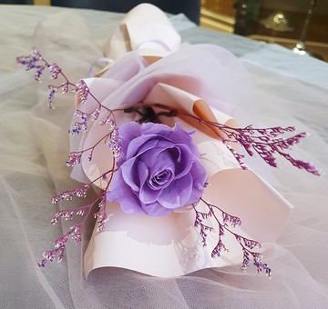 韓系華麗紫不凋花束-永生玫瑰花束。情人節/七夕/生日/紀念日禮物
