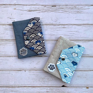 免費繡名字。貓咪青海波-2色可選。口罩收納袋 衛生棉包 萬用隨身