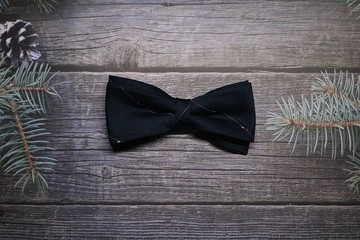 黑色小方塊真絲八字結領結/婚禮宴會禮服蝴蝶結