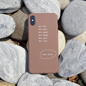 https://live.staticflickr.com/65535/48878184093_72b065693d_b.jpg**<關於商品>**Just alive不好不壞不喜不悲不窮不富多少人就是這麼活著人生可能多數時刻就是這樣的吧https://live.staticflickr.com/65535/48878184338_71b0ee0134_b.jpg**<商品特色>**- 霧面軟質保護殼,手感上較不會像硬殼容易手滑- 模擬側邊按鍵設計,套上保護殼後也可以輕鬆操作按鍵- 側邊有吊飾孔,可加裝頸繩- 保護殼裝上後比手機表面略高,增強防護力- 背面鏡頭開口與下緣音訊孔開口的形狀依不同型號有所差異https://live.staticflickr.com/65535/48878915987_26bbf3847b_b.jpghttps://live.staticflickr.com/65535/48878184373_0effd79183_b.jpghttps://live.staticflickr.com/65535/48878915552_c20c41256d_b.jpghttps://live.staticflickr.com/65535/48878184433_bc8fa14558_b.jpghttps://live.staticflickr.com/65535/48878860961_e9324bf241_b.jpg**<注意事項>**- 所有手機殼皆為接單訂製商品,下單後約 14 個工作天內出貨- 各種螢幕顯示器所呈現的商品照可能會產生色差,商品顏色請以實品為主- 如有疑問,歡迎利用站內信詢問