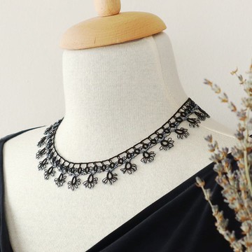 梭編蕾絲項鍊【蕾絲】煙燻黑
