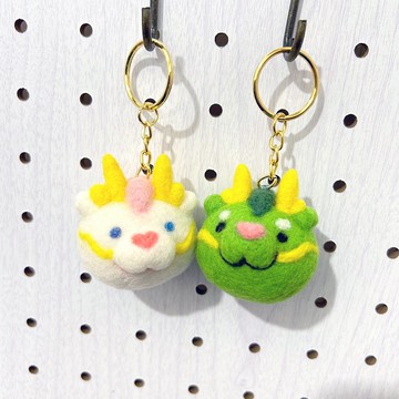 【羊毛氈鑰匙圈 胸針 別針】小白龍與小綠龍,和樂龍龍過每一天(ˊᗜˋ*)【材質尺寸】西班牙短毛龍頭約4.5cm X 5cm X 4cm【保養說明】✻溫柔的用愛照顧他✻作品可以用手揉捏,但不可以拔毛✻發現小灰塵,可用吹彈方式清理✻使用後,表面如有因摩擦產生的小毛球、小雜毛,用小剪刀修飾就好✻可以放盒子裡給他一個家 【購買前需知】\t\t\t\t✻手作品為接單訂製,不提供退換貨✻請仔細確認尺寸與造型是真心喜歡,勿用想像力下單✻表情、形狀、顏色可因製作手感與拍照光線等因素有些微不同✻製作時間不含例假日,如購買一件以上可能會延長時間✻謝謝你喜歡我的創作