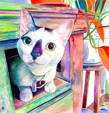 個性化貓肖像畫,水彩手繪。免運費