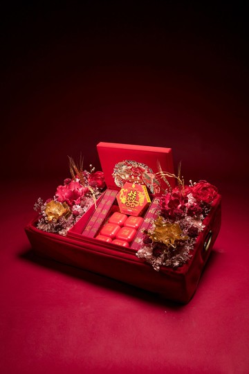 完美的那一天,更需要精緻的中式聘儀襯托文定細節。嘉禮文創特邀花藝師設計,以最具質感的花藝、精繡龍鳳盒,打造完美六禮木盛,更依照您的儀式流程,推薦最適宜的聘禮組合~歡迎您預約欣賞體驗。內含:禮香炮燭、六色糖 二 份木盛、永生花、龍鳳盒租借 二 組租期:四天三夜押金:3000元 (僅收現金)備註:本商品因含手工花藝,故需至台北工作室親取無法寄送。