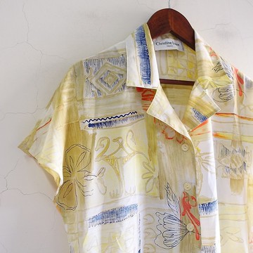 【蛋植物古著】苑彩花景印花寬鬆古著襯衫