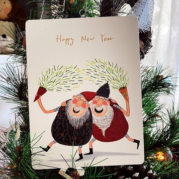 Happy New Year 賀卡卡片尺寸:約130x175mm(明信片式,單張雙面印刷)卡片材質:厚卡質感紙材數量:1張+1個信封台灣製造