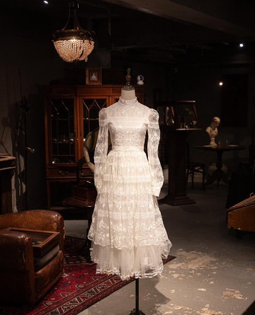 70年代公主袖蕾絲古董婚何