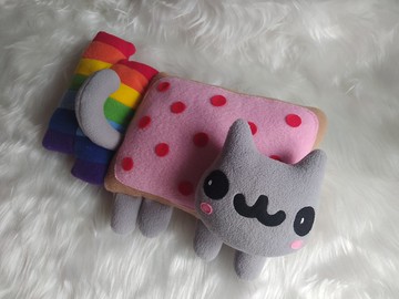 彩虹貓絨毛玩具可愛的軟餅乾貓玩具。由舒適的羊毛製成。閃爍和縫合的小細節。尺寸:30x20cm材質: 羊毛