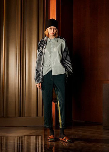 不對稱衣襟抓褶襯衫