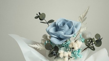 https://live.staticflickr.com/65535/54096568998_940aa226c0_b.jpg**實用花語系列**花語,自古以來便是不同文化中表達情感的方式。將花朵與特定情感意涵緊密相連,在含蓄的語境中悄悄訴說心中話。透過永生花的形式,更讓心意長存。https://live.staticflickr.com/65535/54116051422_a133bf2c8b_b.jpg**關於藍玫瑰花束**** "Sometimes you gotta get lost to find your way." — Soul ****藍玫瑰花語:奇蹟、相知相惜、夢想與信仰**◎ 精選進口永生寶寶藍玫瑰,搭配繡球花與兔尾草,運用流行的韓式包裝技術,打造出小巧而精緻的花束。無論是傳遞心意還是慶祝特別時刻,都能替您說出心底最深的祝福。◎ 尺寸(長寬高): 20公分×12公分×26公分 (手工製作測量,可能有±2~3公分誤差)◎ 材料: 永生玫瑰、永生繡球、滿天星、尤加利葉、兔尾草等乾燥花材◎ 花束附贈透明提袋,若作為送禮,可選擇加購精緻提袋更顯質感**品牌介紹**Komorebi Florist的創立是一個從心出發的旅程,在工作打滾奔波時,意外在花藝中得到療癒,那樣的療癒感就像走在林蔭道上,陽光穿透枝葉後零星灑落在身上,仰頭用手輕輕遮擋後在指縫間漏下的光,是生活中寧靜的片刻,是想握在手心中的小確幸與美好。▸▸更多關於木漏日 IG🔍komorebiflorist,FB🔍木漏日 komorebiflorist⚠️__關於運送__⚠️- 雙北捷運站可提供免費面交服務,下單前請先私訊確認預約時間。- 工作室位於台北市中山區,若Lalamove建議為雙北及桃園地區,運費由買家收件自付,費用請參考Lalamove公告標準;也可訂購前來訊詢問雙北捷運站自取。- 中大型與脆弱花禮最佳運送法建議自取,次為黑貓宅急便或Lalamove運送。- 中大型花禮(尤其花束及捧花)建議1件放1個箱子避免擠壓,若超過2件商品請分開下訂。- 乾燥花在運送過程有些許掉落為正常現象。__保存訣竅__◎ 永生乾燥花為真花經特殊處理後製成,不需澆水照顧,建議放置乾燥通風處,避免潮溼及陽光直曬。◎ 保存良好下可放置數年,最佳觀賞期為2年,隨時間慢慢褪色脆化為正常現象。◎ 長時間放置有灰塵時,請使用吹塵球吹拂或棉花棒清理。◎ 永生花葉遇環境溼度高可能稀出有色甘油,導致染色情形,建議連續雨天濕機除使用,或出現葉材發霉時可用75%以上酒精局部擦拭,並置於陽光下乾燥或吹風機小風吹乾。__購買須知__◎ 乾燥永生花源於自然花草處理而成,每朵花葉的色調姿態不盡相同,手工製作下會依照花葉姿態調整最適合的位置,故不會有完全相同之作品,亦沒有完全無暇的花,若會介意者須審慎下單。◎ 作品原則上會使用介紹中提到的花材製作,若因市場因素無法取得,設計師將根據實際情況進行適當的花材調整與替換。◎ 由於螢幕顯示設定和拍攝光線的影響,商品顏色可能與圖片略有不同,團隊盡力呈現最接近的效果,但最終請以實物顏色為準。◎ 客制化無法退款。◎ 花材為自然消耗品,若為單純使用無發生效能上之損害時不在法令規範之保固範圍內。