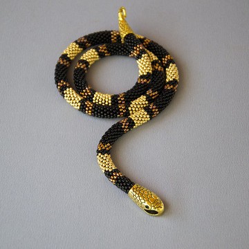 黃色串珠蛇項鍊,種子珠項鍊,銜尾蛇,珠鉤針項鍊