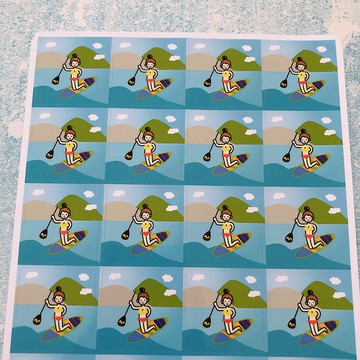 SUP 夏日 玩水 正方形貼紙 3.5公分 24枚