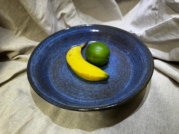 以細緻手工拉胚塑形,並以高溫窯燒呈現獨特色澤,此盤內裡藍釉如夜空般層疊深邃,外壁花紋浮紋更添古雅韻味。每一件作品皆為獨一無二的工藝表現,不僅適合居家使用,更適合作為陶藝收藏或擺飾。展現手工陶藝的溫潤質感與藝術價值。