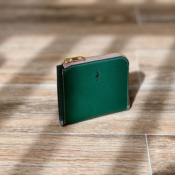 https://image-cdn.qdm.cloud/site/q6678dd3dc1424/image/data/Pinkoi/Atelier_T.png**L Piccolo L型拉鍊短夾 / 深綠 (ふかみどり)**內外皆採用義大利植鞣革協會認證的植鞣牛革,質地柔軟又滑順。深綠(ふかみどり)讓人著迷的經典顏色,隨著使用時間,光澤感漸增,培育出帶有個人風格的革小物!https://image-cdn.qdm.cloud/site/q6678dd3dc1424/image/data/Pinkoi/LPiccolo/Front.jpg日本製YKK最高等級EXCELLA拉鍊,拉鍊齒皆經過研磨拋光,炫目的外表更添奢華質感。相較於一般拉鍊,耀眼的金銅色拉鍊齒排列密集且間隙小,拉動拉鍊頭時,可感受到密集的拉鍊齒間所傳遞的厚重感。https://image-cdn.qdm.cloud/site/q6678dd3dc1424/image/data/Pinkoi/LPiccolo/Back1.jpg製品邊緣是採用所謂「切面」加工的製法,切面即為皮革的裁斷面,相較於採用「緣返」加工製法,更為耐用。即使皮件邊緣劣化,也可視狀況進行修補。製作過程中,採消光方式處理皮革的裁斷面,霧面邊緣呈現美麗的滑順感。https://image-cdn.qdm.cloud/site/q6678dd3dc1424/image/data/Pinkoi/LPiccolo/Stand.jpg**掌心般的大小,輕薄的短夾**短夾的內部右側有一卡片夾層,中間則為附V型側折邊的零錢袋。開啟短夾,零錢袋也隨之張開,弧形淺口設計,零錢不僅好辨識,也便利收取。圓弧底部,手感絕佳!https://image-cdn.qdm.cloud/site/q6678dd3dc1424/image/data/Pinkoi/LPiccolo/Open2.jpghttps://image-cdn.qdm.cloud/site/q6678dd3dc1424/image/data/Pinkoi/LPiccolo/Open.jpg短夾背面還有一個卡片夾層,可收納常用的卡片。儘管短夾的體積小巧,仍然設計了2個可以個別收納卡片的夾層!紙鈔則以對折方式收入短夾。 https://image-cdn.qdm.cloud/site/q6678dd3dc1424/image/data/Pinkoi/LPiccolo/Back2.jpg拉鍊前端的曲線,呼應著整體設計的語彙。拉鍊的拉片為黃銅材質,開罐器般的復古造型,不僅實用也兼具美感。https://image-cdn.qdm.cloud/site/q6678dd3dc1424/image/data/Pinkoi/LPiccolo/Side.jpg**Piccolo為義大利語,表示小巧之意。****~ 構造簡約,輕薄小巧 ; 一手在握,便利攜行 ~**【規格】皮革:**「義大利植鞣革協會」認證植鞣牛革**金属:日本製YKK EXCELLA金屬拉鍊、黃銅製拉片功能:主口袋x1 ; 卡片夾層x2 ; 零錢袋x1 (內外各一個)尺寸:長10.5cm x 寬8.5cm x 厚2cm重量:55g縫製:日本東京 ● タクミクス工房 謹製(重量/尺寸為概略估計)**※請勿於內、外卡片夾層同時收納感應式卡片,以避免重複感應而感應失敗。****※卡片夾層僅能收納無護貝(保護套)的卡片(信用卡尺寸),亦不適用台灣駕(行)照的收納。**https://image-cdn.qdm.cloud/site/q6678dd3dc1424/image/data/Pinkoi/WP1.jpg**Italian Leather (イタリアンレザー)****イタリア製最高級ランクの革** § **イタリア人の色のセンスが結晶**使用歐洲生產的牛原皮,以傳統植物鞣革工法所製作的而成,隨著使用時間,越能孕育出自我風格的皮革。使皮革柔軟而富含油脂的皮革,使用越久,光澤感會更顯著。洋溢著古典氛圍的皮革,肌理的觸感彷彿能感受到歐洲的歷史悠久景緻。看著皮革時,更能理解義大利植鞣革工房的色彩品味!義大利植鞣革協會成員使用的是食品業生產供人們食用的肉類時所欲丟棄的副產品 - 生皮。製革過程中使用的許多素材亦可在不同領域進行回收、循環和再利用。所生產的植鞣革,不含任何對人類和環境有害的有毒物質。始於天然的再生素材,以天然單寧酸鞣製成革,協會認證植鞣革的生命週期結束時可生物分解回歸自然。https://image-cdn.qdm.cloud/site/q6678dd3dc1424/image/data/Pinkoi/brand_image_1.jpg**Takumics 職人魂****熟練技藝、男女兼用及復古風格 - 設計基準**品牌名稱『Takumics (タクミクス)』係由工房主理職人的日文羅馬拼音名字「Takumiタクミ (日文漢字為「巧」)」及英文「Technic (技藝)」所發想而來。品牌Logo為戴著王冠的海馬。海馬的樣貌讓人聯想到馬或龍的頭而引用為辰年的代表動物。海馬,不僅曾出現於希臘神話中,也是名貴的漢方藥材,更是平安順產的象徵。海馬的王冠是以作為職人象徵的「金槌」為主題設計而成。以成為頂尖的職人為目標,致力於製作出優質的作品,並希望作品為擁有人所喜愛,為此我們創立「Takumics」。https://image-cdn.qdm.cloud/site/q6678dd3dc1424/image/data/Pinkoi/WP2.jpg**Takumics 職人技**皮革裁切面,在日本皮革工藝中以「コバ(KoBa)」稱呼之。皮革裁切後,裁切面會殘留皮革纖維而影響外觀美感 (如上圖中),因此職人會施以特殊藥劑來研磨皮革裁切面,直到裁切面呈現圓滑狀態後(如上圖上),再經過2道著色後才完成帶有光澤感的平滑邊緣(如上圖下)。https://image-cdn.qdm.cloud/site/q6678dd3dc1424/image/data/Pinkoi/Packing.jpg【包裝】日本原廠黑色硬式禮物盒包裝,製品先裝入不織布防塵袋,然後再裝入燙金烙印的原創LOGO禮盒。(包裝示意圖:包裝方式、包材及附屬配件或有可能更動,恕不另行通知,請以實際收到商品為準)https://image-cdn.qdm.cloud/site/q62c4440ca404e/image/data/Product_Homepage_Layout/RecyclingCarton.png【注意】★無防止誤刷功能,請勿將IC感應卡相鄰收內於卡片夾層!★因拍攝略有色差又或每台螢幕顯示設定不一,每批進料皮革與網頁呈現多少會有顏色差異,敬請諒解。圖片僅供參考,顏色請以實際收到商品為準。★皮革具有天然的傷痕及皺紋,選裁時會盡量避免,但仍不免會出現之,敬請諒解。★產品(含包裝)規格如有更改,恕不另行通知,敬請諒解。★中文翻譯若有未盡事宜或疏誤,請以日文官網為主。