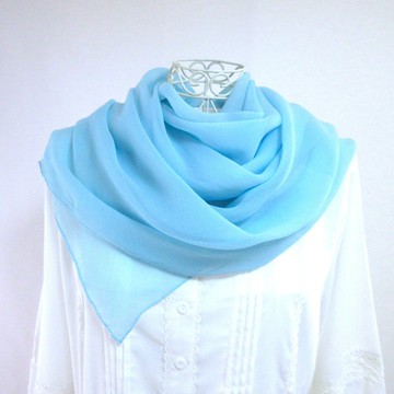 草木染・藍草鮮葉染・絲綢雪紡・大尺寸披肩・宛如置身水中