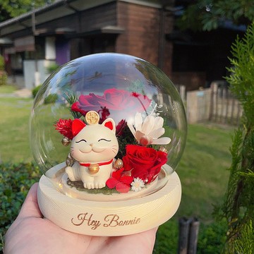 超大器招財貓玻璃盅盆花 不凋花 開幕誌慶/升遷/喬遷 祝賀首選