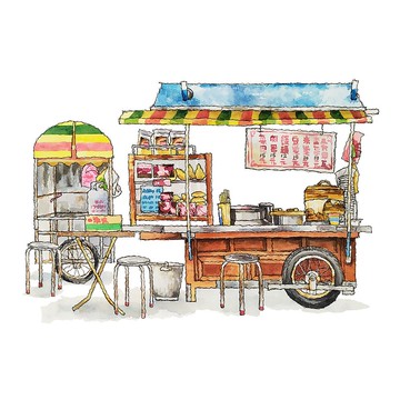 台灣懷舊街景海報-北港杏仁茶早餐餐車-藝術微噴/文創掛畫/複製畫