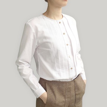 圓領白襯衫,上有淺灰細格,俐落舒適。前開襟兩邊打褶,但一邊小摺一邊大摺。是基本款式,但又有些變化。棉料材質加少量人造纖維,使棉襯衫好穿不易皺。霧面金小圓釦,添加好質感。布料厚度:中布料柔軟度:中垂墜度:低彈性:無口袋:無提供尺寸:S/M/L 您您可參考平日所穿衣服攤平測量的尺寸S號 : 肩寬: 38cm / 胸圍 : 44cm / 腰圍 : 43cm / 下擺: 45cm / 衣長 : 60cm / 袖長 : 54cmM號 : 肩寬: 40cm / 胸圍 : 46cm / 腰圍 : 45cm / 下擺: 47cm / 衣長 : 60cm / 袖長 : 55cmL號 : 肩寬: 42cm / 胸圍 : 48cm / 腰圍 : 47cm / 下擺: 49cm / 衣長 : 61cm / 袖長 : 56cm衣服為全手工製作,可能存在1cm左右的誤差試衣小妹尺寸: 身高167CM. 胸圍34吋. 腰圍26吋.臀圍36吋.體重50kg,本款穿著M號。材質:90%棉 / 10%人造纖維 注意事項:1.請用30度以下低溫水洗2.建議手洗3.請用慢速短時間脫水4.不可漂白5.低溫整燙6.請與深色衣物分開洗滌7.請勿使用機器烘乾8.請勿長時間浸泡於洗滌劑中