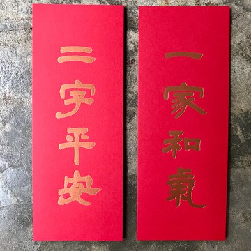 一家和氣,二字平安。貼大門或任何地方都適宜山珍海味,年年有春。貼廚房最有滋味豐年有餘,財發福來。居家可貼廚房,店鋪可貼收銀臺後方春光美好,節氣佳和。貼在書房、臥室、客廳書法:清代書法家鄧石如(1743-1805)尺寸:8 X 21 cm用紙:環保紅卡紙磅數:240 g/m2 厚磅印刷:凸版燙金 Hot Foil Stamping顏色:霧玫瑰金色 Matte Rose Gold背面:留白 Blank on the back- - -美好一日工作室謹製Printed in Taiwan- - -關於運送付款後,從備貨到寄出商品為1-2個工作天,不包含假日若選郵局掛號,郵局投遞時間為寄件後第2、3日投遞若選超商取貨,商品寄出48小時後抵達指定門市,敬請留意物流系統發送的簡訊通知
