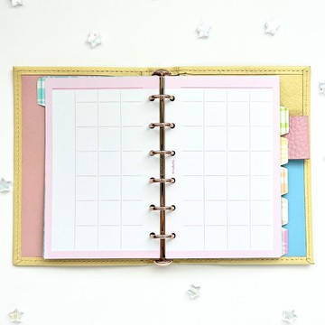 這是一款適用於迷你6尺寸活頁手帳的月間리필,可讓您自行填寫星期和日期。您可以隨心所欲地使用它,無需擔心星期起始或日期標記位置。請自由運用於行程管理、粉絲應援活動、簡短日記等。◇KiraRefill.리필的特色・採用超厚紙(優質紙110kg),不易透背,讓您喜愛的活頁手帳瞬間增添厚實感。・基礎色調的設計,可搭配色彩進行手帳裝飾。簡約的單色調,不受裝飾風格限制。・幾乎所有填寫欄位都印有細點方格,方便您書寫整齊的文字,或乾淨地黏貼貼紙和紙膠帶。・購買者可獲邀進入專屬頁面,閱讀리필的詳細說明。◇商品內容・月間フリーリフィル (共30張)・可連結專屬頁面的會員卡 (每筆訂單一張)◇商品詳情・頁面配置:無日期 雙頁展開 月間 (約4mm細點方格)・紙張厚度:特厚 (優質紙110kg)・尺寸:長126mm x 寬80mm (迷你6)・顏色:粉色・天藍色・紫色・綜合色◇注意事項・雖然我們在商品生產過程中已盡力確保品質,但由於生產流程的關係,偶爾可能會出現黑點或色差等情況。・不包含活頁夾。