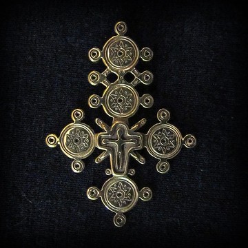 美麗的手工黃銅十字架項鍊吊墜產於烏克蘭。Hutsuls 的傳統烏克蘭十字架項鍊吊墜護身符-烏克蘭喀爾巴阡山脈的土著居民。自古以來,人們認為十字架是四種地球元素統一的象徵:土與火、空氣與水。該符號還揭示了時間與空間、能量與信息之間的關係。這款復古黃銅十字架吊飾是人類與世界和諧相處的標誌。尺寸:43x32 毫米(1.7" x 1.3")