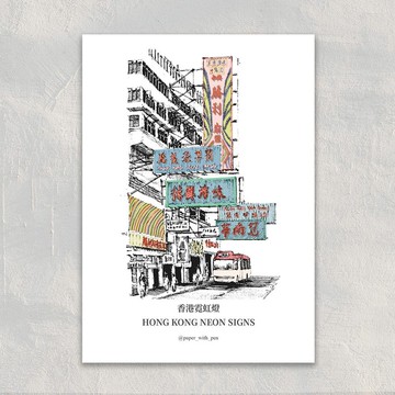 A6 香港手繪小店明信片 : 香港霓虹燈