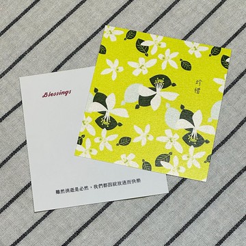 柚花花語:珍惜雖然消逝是必然,我們都因綻放過而快樂材質:珠光紙尺寸:寬9.9cm 高10.5cm產地:台灣*無塑膠套包裝*拍攝光線及個人顯示器不同之因素,有色差可能