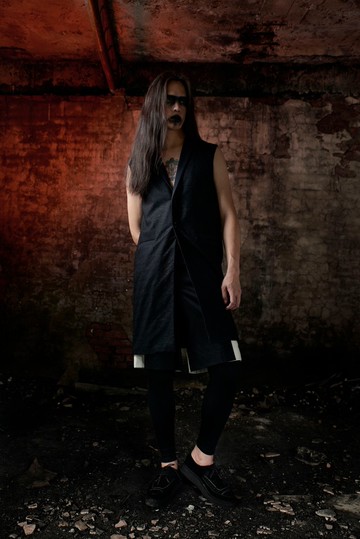 《材質》主布:45%羊毛55%聚酯纖維黑紗:100%聚酯纖維《尺寸》Freesize(可依據一般市售男裝M號尺碼),我們亦可接受客製服務《設計理念》文明今日,人們面對異己,仍然依循著逃避心態。毀滅成為最殘酷、現實的結果,將所有未知一一崩解。「無知」,才是這一切恐懼的淵藪,我們無視、傲慢、摧毀,當一切燃燒殆盡,內心也隨之腐化,自欺欺人,傷者,自傷。產地/製造方式產地台灣 手工製作