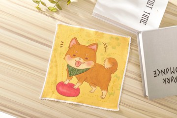 純棉100% MIT不掉色::插畫小方巾(想去散步的柴犬)