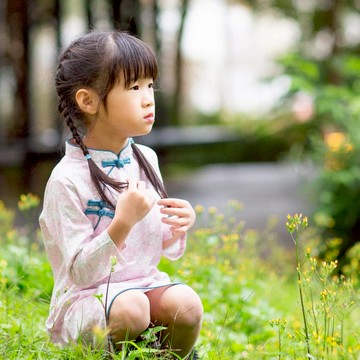 兒童旗袍 古風 七分袖厚款 花柔沁粉