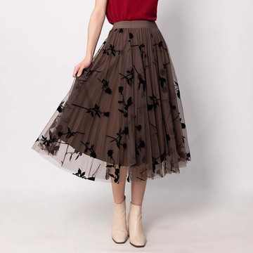 【Icare】鬆緊絨布緹花網紗裙(F) | 裙子 休閒長裙 紗裙