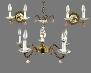 陶瓷燈飾 3 件套 | 復古陶瓷 5 燈枝形吊燈